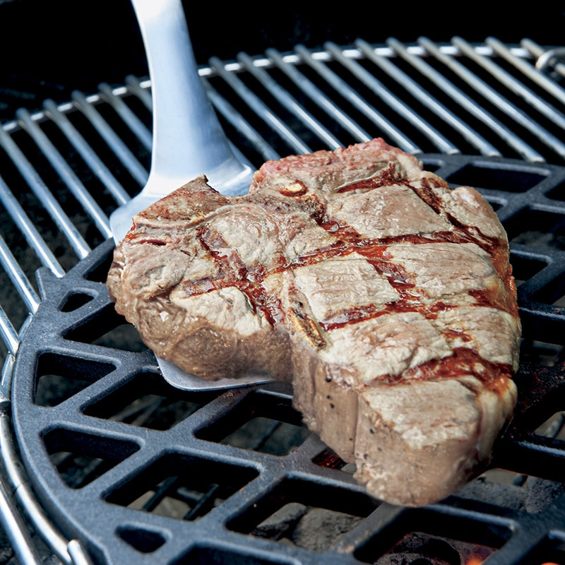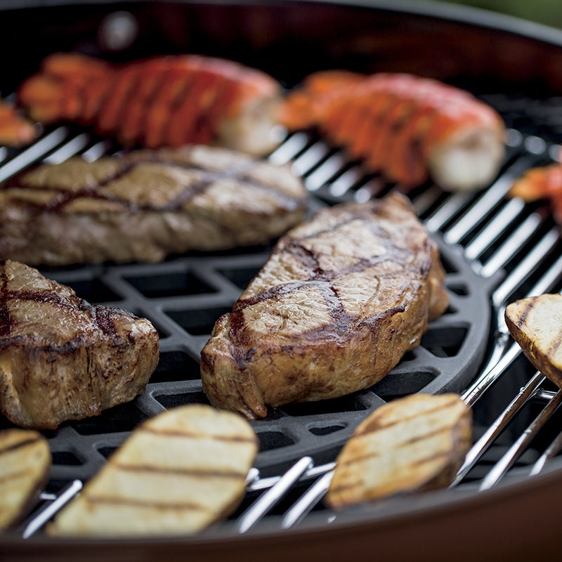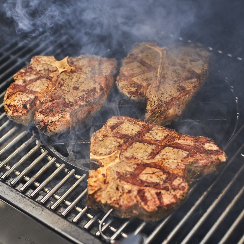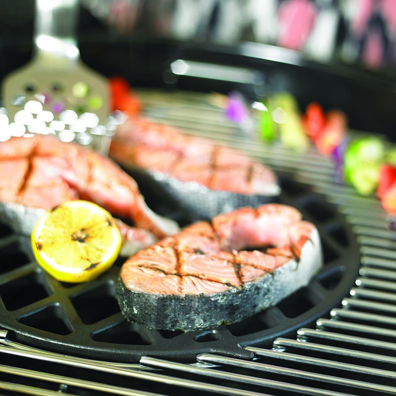 Γίνετε ο grill master που πάντα ονειρευόσασταν, τελειοποιώντας την τέχνη και την επιστήμη της τέλεια ψημένης μπριζόλας. Ευτυχώς για εσάς, και για τους καλεσμένους σας, υπάρχει η Σχάρα για Searing Gourmet BBQ System, που θα σας βοηθήσει να γίνετε εύκολα ένας backyard hero. Η σχάρα κατασκευάζεται από χυτοσίδηρο με εμαγιέ πορσελάνινη επίστρωση και διανέμει ομοιόμορφα τη θερμότητα, δημιουργώντας επαγγελματικές γραμμές ψησίματος ενώ σφραγίζει στο εσωτερικό του φαγητού σας όλη την υγρασία και τη γεύση. Οι καλεσμένοι σας θα εντυπωσιαστούν με την πρώτη ματιά και θα απολαύσουν κάθε μπουκιά, μέχρι την τελευταία.