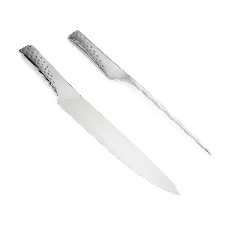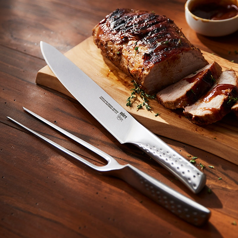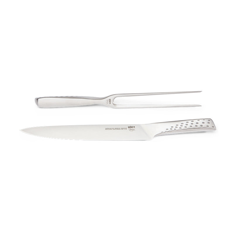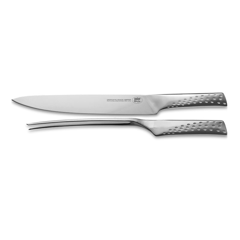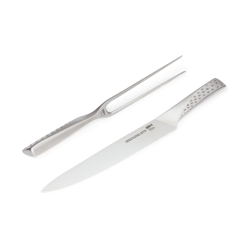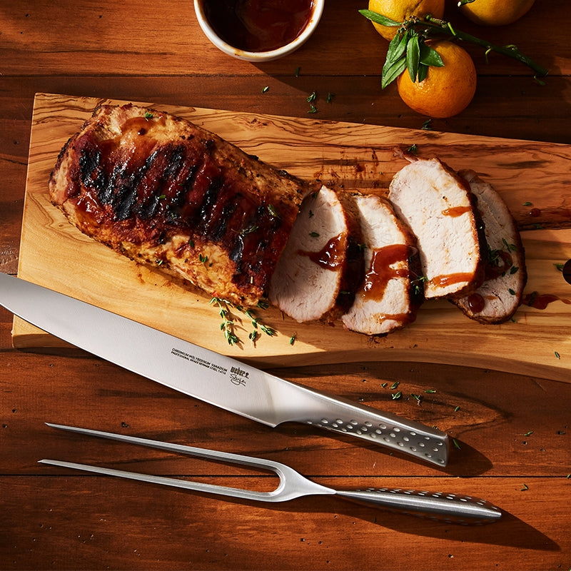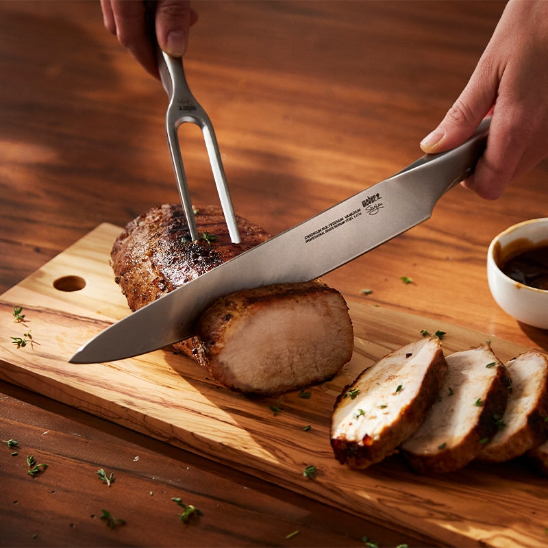 Κόψτε το κρέας σας απευθείας από την ψησταριά σαν επαγγελματίας και κάντε τις προσπάθειές σας στο μπάρμπεκιου πράξη! Το μαχαίρι και το πιρούνι που ανήκουν στο κομψό deluxe carving set της Weber είναι κατασκευασμένo από ανοξείδωτο ατσάλι κι έχει σχεδιαστεί για να σας προσφέρει το καλύτερο κράτημα και την πιο αιχμηρή κοπή. Έτσι, μπορείτε να κόψετε ό,τι κρέας σας αρέσει παίρνοντας ένα καθαρό, όμορφο κομμάτι.