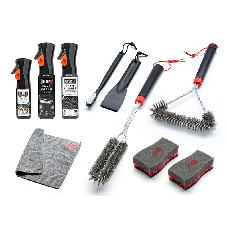 Δώστε στην ψησταριά σας την αγάπη και τη φροντίδα που της αξίζει! Ένα καλό καθάρισμα ανά τακτά χρονικά διαστήματα μπορεί να κάνει θαύματα, εξασφαλίζοντας έτσι όχι μόνο τέλεια αποτελέσματα ψησίματος, αλλά ασφάλεια και ιδανική κατανομή θερμότητας. Το κιτ περιλαμβάνει: βούρτσα καθαρισμού #6277, βούρτσα καθαρισμού ακριβείας #6279, ξύστρα και βούρτσα #6202, καθαριστικό για εμαγιέ επιφάνειες #17684, σφουγγάρι καθαρισμού #17688, πανί καθαρισμού #17689 κι αντικολλητικό spray #17685.