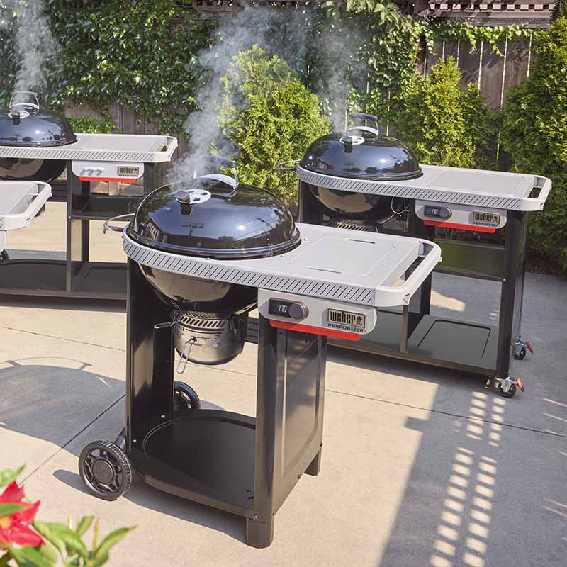 Η Weber Performer Deluxe Smart Ø57 cm συνδυάζει την κλασική απόδοση της Weber Kettle με έξυπνο χώρο για προετοιμασία, σερβίρισμα και αποθήκευση των απαραίτητων αξεσουάρ, προσφέροντας ταυτόχρονα έξυπνες λειτουργίες ψησίματος για πλήρη έλεγχο της θερμοκρασίας των κάρβουνων. Το LCD Wi-Fi® Enabled Controller σας επιτρέπει να φτάσετε, να κρατήσετε και να ρυθμίσετε τη θερμοκρασία μέσω ενός ψηφιακού ανεμιστήρα που κατευθύνει τον αέρα στα κάρβουνα – ιδανικό για μακρά ψήσιμα και νυχτερινό καπνιστό ψήσιμο. Η Performer Premium Smart 57 cm προσφέρει smart έλεγχο ψησίματος ενώ διατηρεί όλα τα πλεονεκτήματα των premium Performer μοντέλων: πορσελάνινη επισμαλτωμένη κατασκευή, GBS σχάρα, ειδικό άγκιστρο καπακιού, εύκολο καθάρισμα με σύστημα One-Touch, πλαϊνή ράγα και τραπέζι για snap-on αξεσουάρ. Η ψησταριά μπορεί επίσης να χρησιμοποιηθεί χειροκίνητα χωρίς τις smart λειτουργίες.
