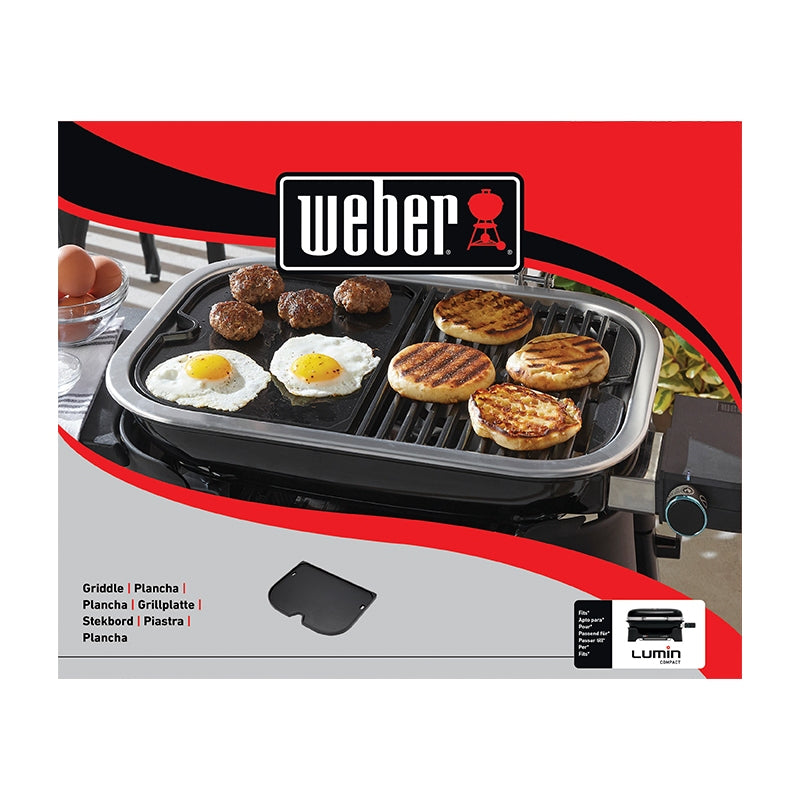Ξεκλειδώστε ακόμη περισσότερες δυνατότητες ετοιμασίας νόστιμων φαγητών με τη συγκεκριμένη πλάκα ψησίματος για την ηλεκτρική σας ψησταριά Lumin* Compact. Μετατρέπει εύκολα την επιφάνεια της ψησταριάς σας Lumin Compact για να μπορείτε να φτιάξετε τηγανίτες και αυγά το πρωί και fajitas και quesadillas το βράδυ. Η επιφάνεια ψησίματος από χυτοσίδηρο με εμαγιέ πορσελάνινη επίστρωση δεν απαιτεί seasoning, κατανέμει ομοιόμορφα τη θερμότητα και εμποδίζει το φαγητό να κολλήσει. Και αφού φάτε όλοι σας όσο θέλετε και χορτάσετε, θα μπορείτε να καθαρίσετε εύκολα την επιφάνεια με σαπούνι και νερό. *Η ονομασία LUMIN είναι εμπορικό σήμα της εταιρείας Weber-Stephen Products LLC και αποτελεί το θέμα εκκρεμών εγγραφών στα μητρώα ή σχετικών αιτήσεων στις ΗΠΑ και σε άλλες χώρες.